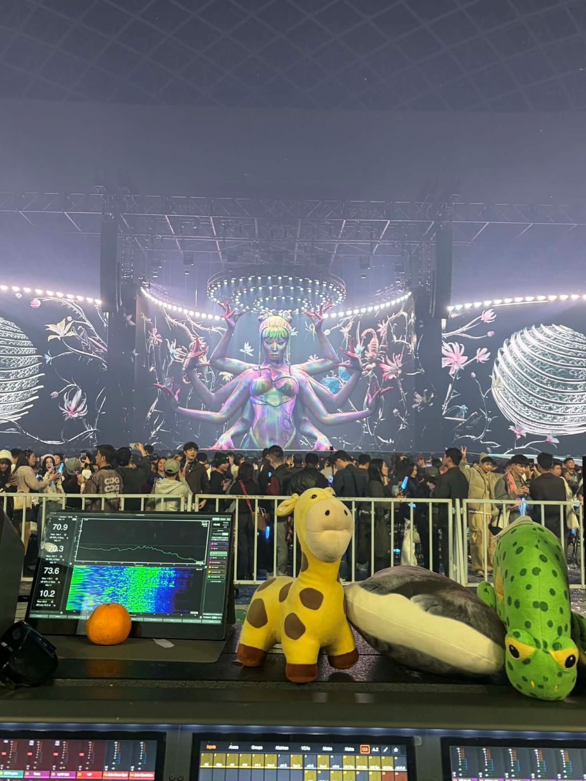 Arena 或大型場館則完全相反,又遠又散。聲音要穿越更大的空間,顧及更遠的座位,還要處理反射、延遲、覆蓋不均與低頻滯留。對觀眾來說,差異也許只是「這區比較清楚、那區比較轟」,但對現場工作者而言,那背後是一整套重新分配聲音的試煉。Live House 與 Arena是兩種完全不同的聽覺政治,是密度與距離的調配,亦是擁擠與離散的極端。
