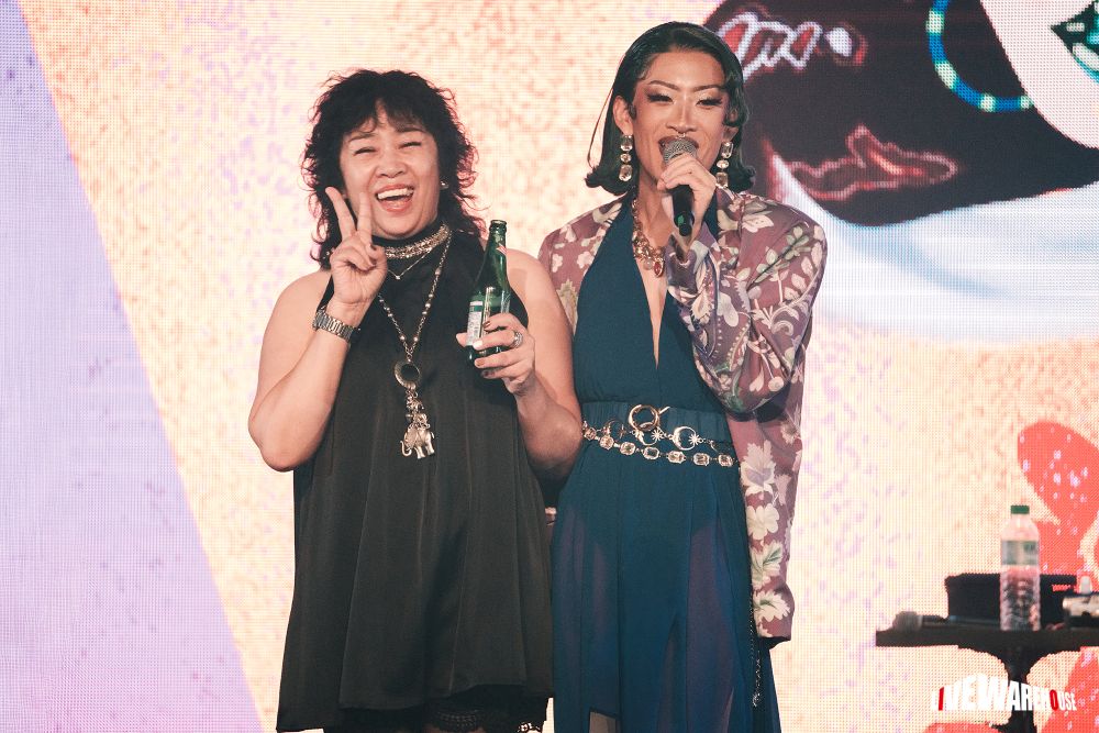 派對的重頭戲當然是皇后們的表演。在正式開始之前,作為暖場,跩姬寶貝、小花寶貝、瑪莉安進行了一場小小的選美互動,鼓勵觀眾自信秀出自己的裝扮,身材,以呼應變裝藝術裡在各種樣貌中表現美麗的精神。驚喜的是,跩姬寶貝的親生母親也大方參與,讓現場氣氛變得熱烈無比。