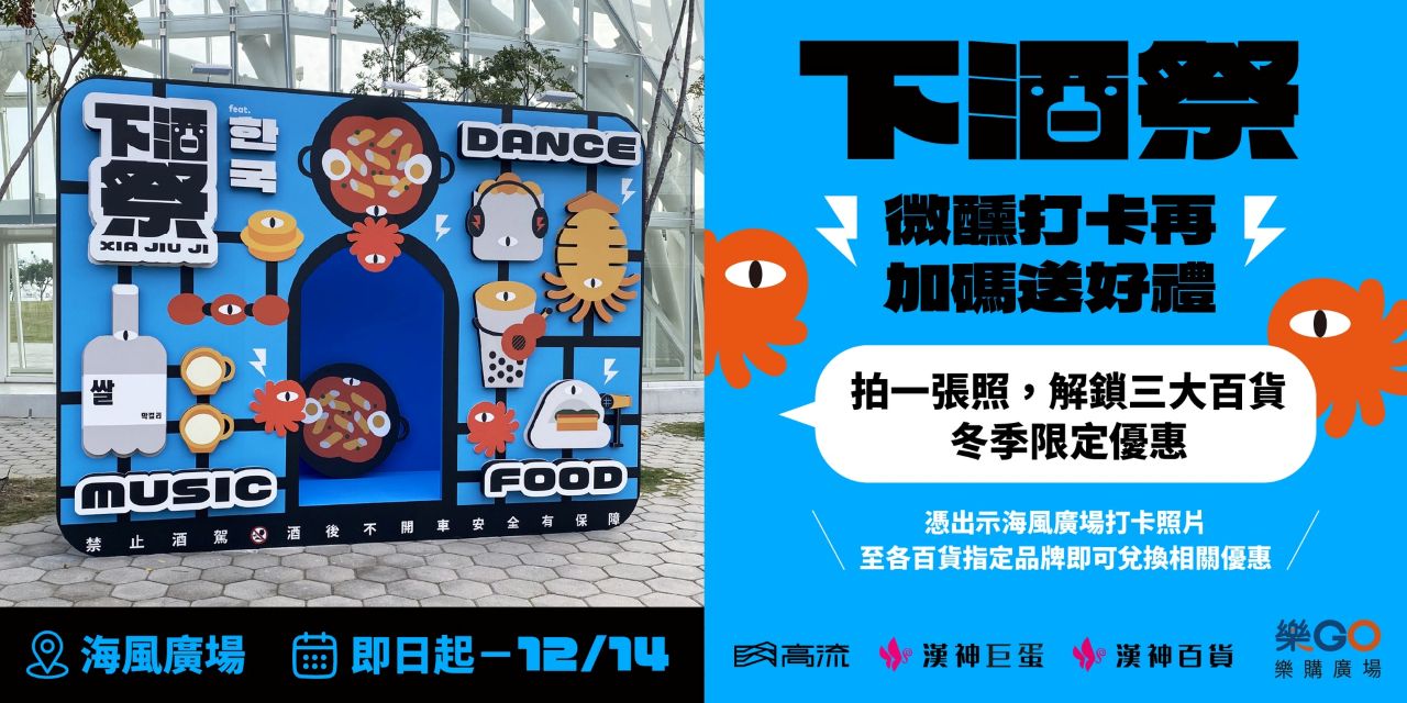 - 到高流海風廣場,找到「下酒祭打卡裝置」