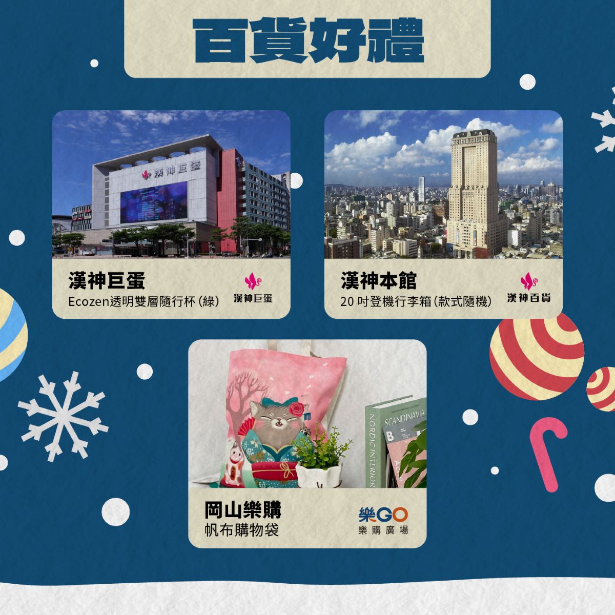 六大品牌聯手應援,福容飯店、承億酒店、夢時代、漢神巨蛋、漢神百貨、岡山樂購,全力加碼 與高雄流行音樂中心,一起化身聖誕老公公陪你暖心迎聖誕🎄