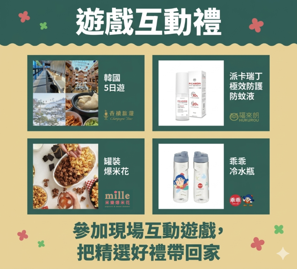 現場參與舞台互動遊戲還有多種豐富好禮!獎項及兌換方式依活動現場說明為主,數量有限,兌完為止。
