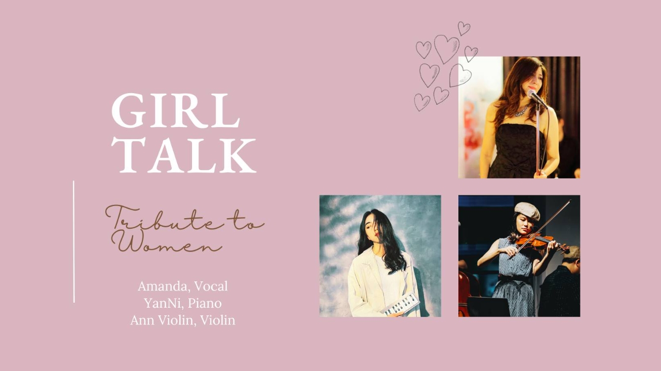 今年3月8日國際婦女節,爵式特別企劃「GIRL TALK」音樂會,由歌手Amanda、鋼琴手YanNi 與小提琴手Ann VioLin攜手,她們將重新詮釋爵士樂壇中具代表性的女性經典作品。這場演出不僅是對女性音樂人的致敬,更是三位當代女性音樂家的心靈交會。